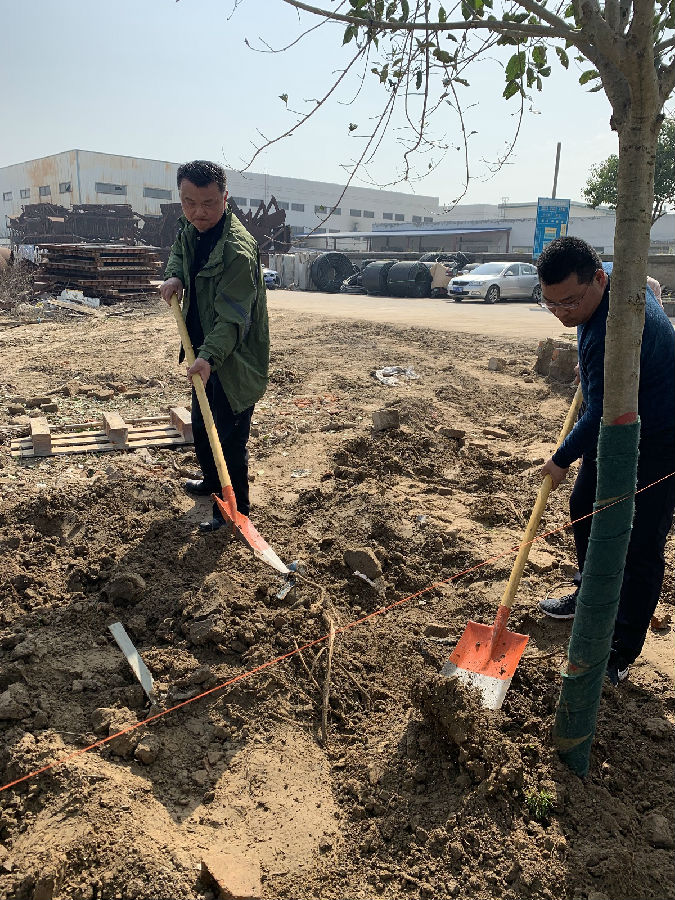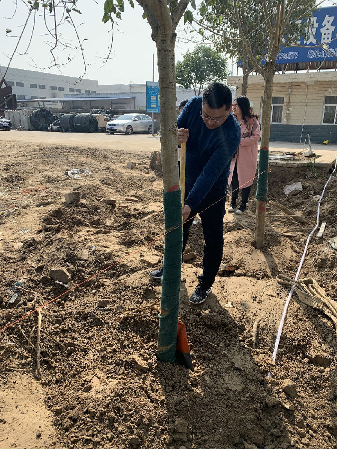 植樹活動開始前,徐書記作了動員講話,參加植樹活動的30多名黨員和志愿者,紛紛熱情高漲、干勁十足,大家丈量拉線、按點挖坑、揮鍬培土,配合協(xié)調(diào),各道工序一絲不茍,忙碌的身影隨處可見,植樹現(xiàn)場一派熱火朝天的勞動場景。經(jīng)過大家的辛勤勞動,30多株大葉女貞樹苗種植在凱通檢測院內(nèi),形成一道亮麗的生態(tài)、綠色風景線,更顯勃勃生機。