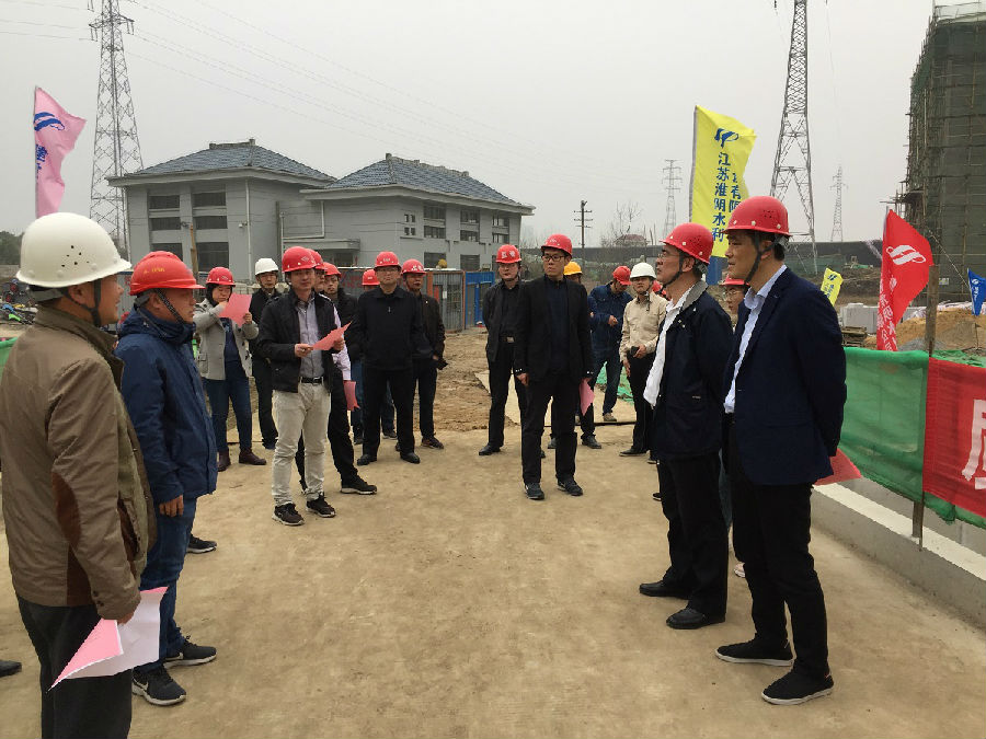 2019年3月21日,水利部建安中心總工程師熊平、建設(shè)司基建處副處長(zhǎng)陳何鎧一行在安徽省水利廳工程建設(shè)處處長(zhǎng)周建春、蕪湖市水務(wù)局局長(zhǎng)王津華、水務(wù)局副局長(zhǎng)王峰、蕪湖市鏡湖區(qū)農(nóng)水局孫科長(zhǎng)等人陪同下,視察我公司承建的袁澤橋泵站建筑安裝工程。